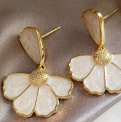 The Daisy earrings bring a touch of floral elegance to any look. With delicate white petals accented by a shimmering gold trim, these earrings are perfect for adding a soft, feminine flair to your outfit. The gold center adds just the right amount of sparkle, making them suitable for both day and evening wear. Lightweight and comfortable, Daisy is the ideal accessory for anyone who loves nature-inspired beauty with a luxurious twist.